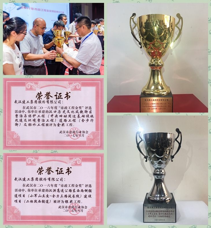7月28日, 2016年度武汉市市政工程金奖表彰大会在武汉会议中心圆满举行,由路桥分公司申报的两项工程喜摘武汉市“市政金杯金奖”一金一银。