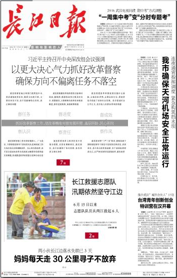 我市确保天河机场安全正常运行(载《长江日报》2016年7月23日头版)